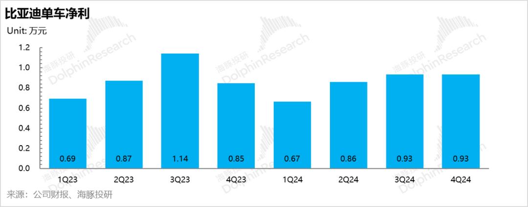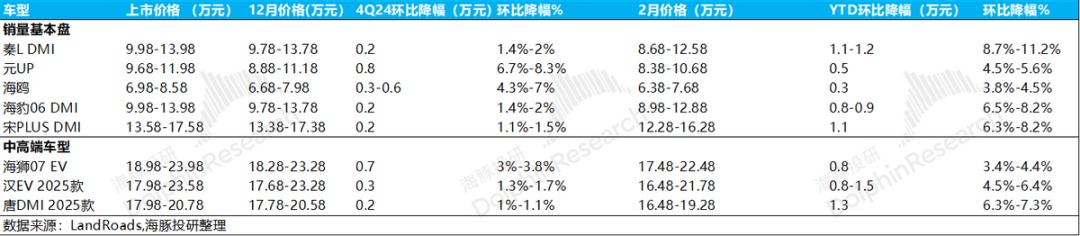 b) 四季度比亚迪对部分车型进行了降价,但整体的环比降幅并不大,大部分车型的环比降幅都在3%以内,所以对卖车单价端的负面影响也不大。
