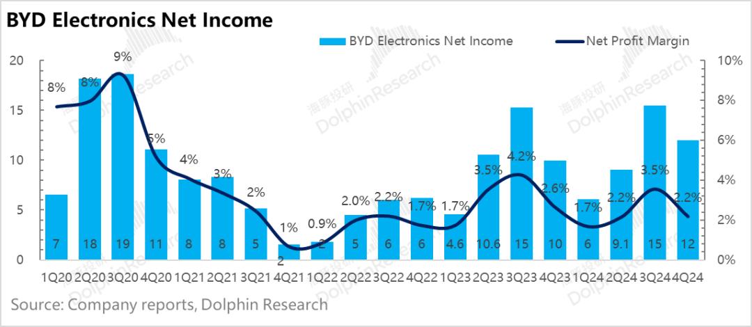 三. 比亚迪电子业务收入端超预期,但毛利率端不及预期