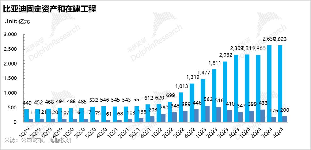 2. 汽车业务毛利率不及预期,但问题也不大:本季度汽车毛利率(含电池业务预估)在高端化占比提高+规模效应释放的情况下,反而相比上季度环比下行了0.2个百分点,海豚君认为可能主要是由于三季度由在建工程的大额转固,导致固定资产的高增,这部分高增的固定资产的折旧影响会全额体现在四季度,导致单车折旧成本相比上季度可能还在环比上行,一定程度上拖累了毛利率。