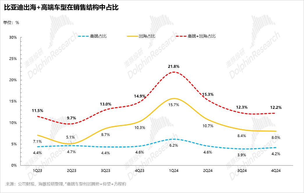 但在出海方面,四季度表现相对疲软,四季度出海销量占比环比三季度下滑0.4个百分点,但可能主要由于出口时间错配影响,问题不大。