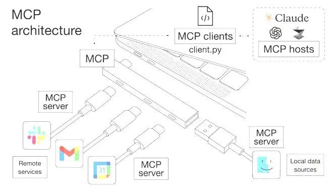 这种变革性的设计,使 MCP 成为 AI 时代的 “USB-C 接口”—— 一个统一的标准协议,让不同设备、服务和数据源能够以极低的成本实现互联。
