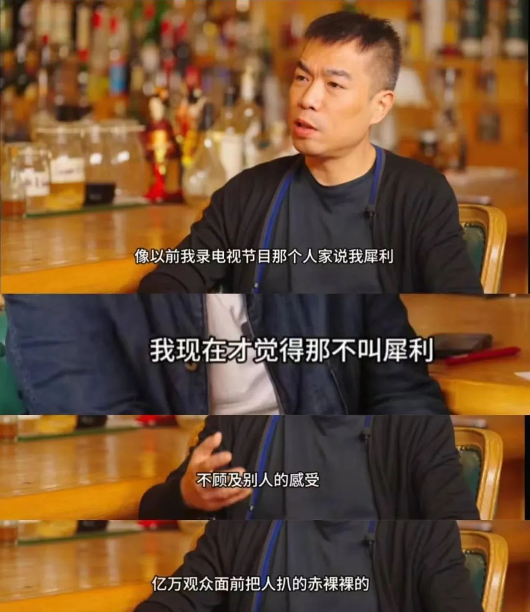 经历了破产的陈昊在采访中说,自己过去在节目里的表现不叫犀利,而是不顾及别人的感受,在亿万观众面前把人家扒得赤裸裸的。