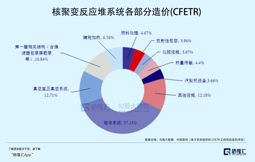 从反应堆系统各组成部分价值量,以CFETR反应堆系统为例,磁体系统、真空系统、第一壁相关结构占比最高,分别达37%、13%、11%。