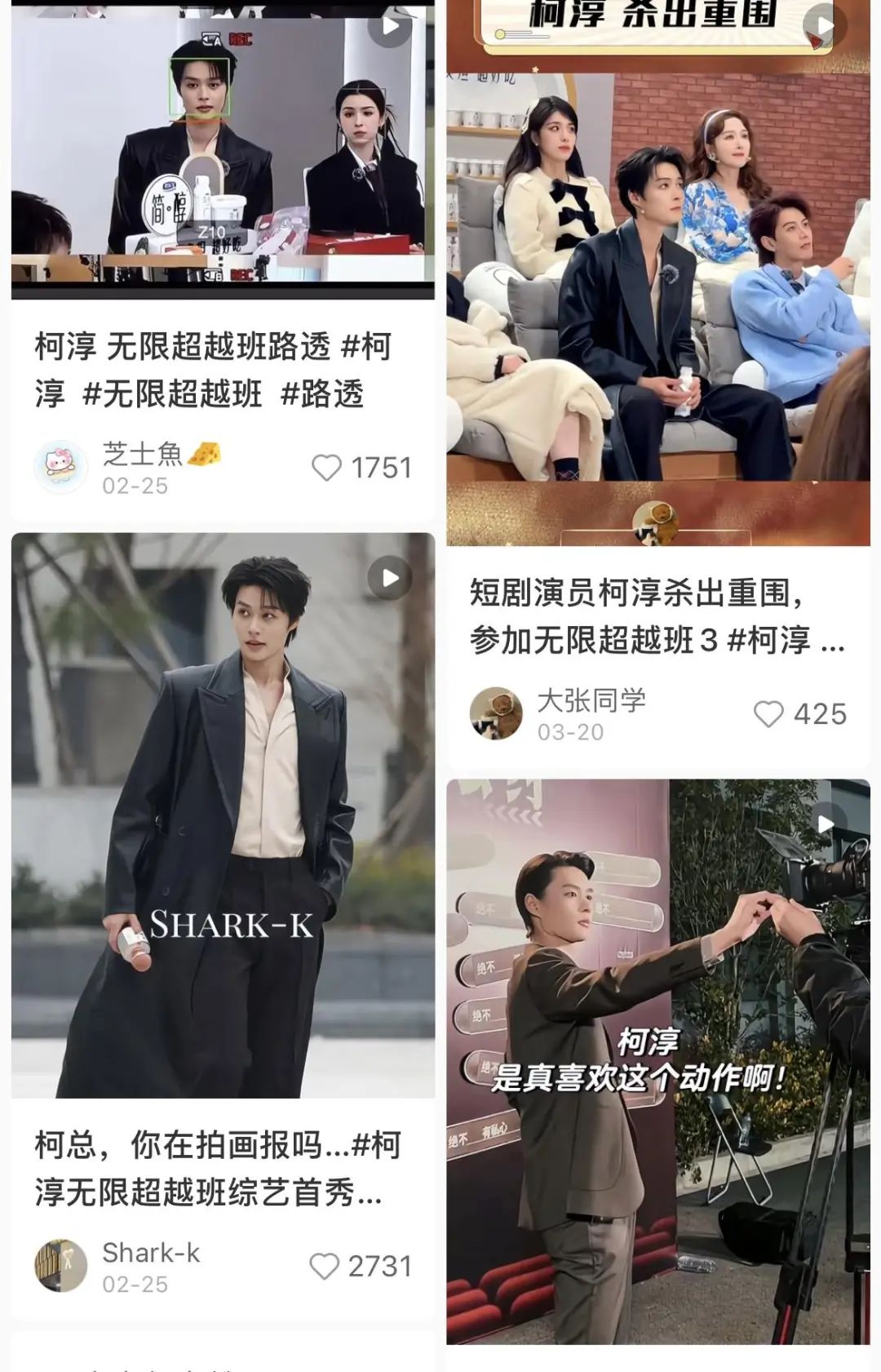 一方面,“饭圈”正在形成,粉丝群体逐步建立起分工不同的组织架构。点开柯淳的微博超话,10万人关注,签到人数1.8万,活粉比例高达18%,超出绝大部分内娱艺人的活粉比重。在超话中,数据组、图频站子、产出博主、红黄V的大粉一应俱全,粉丝组织已初具规模。