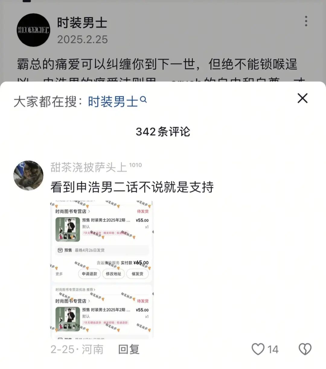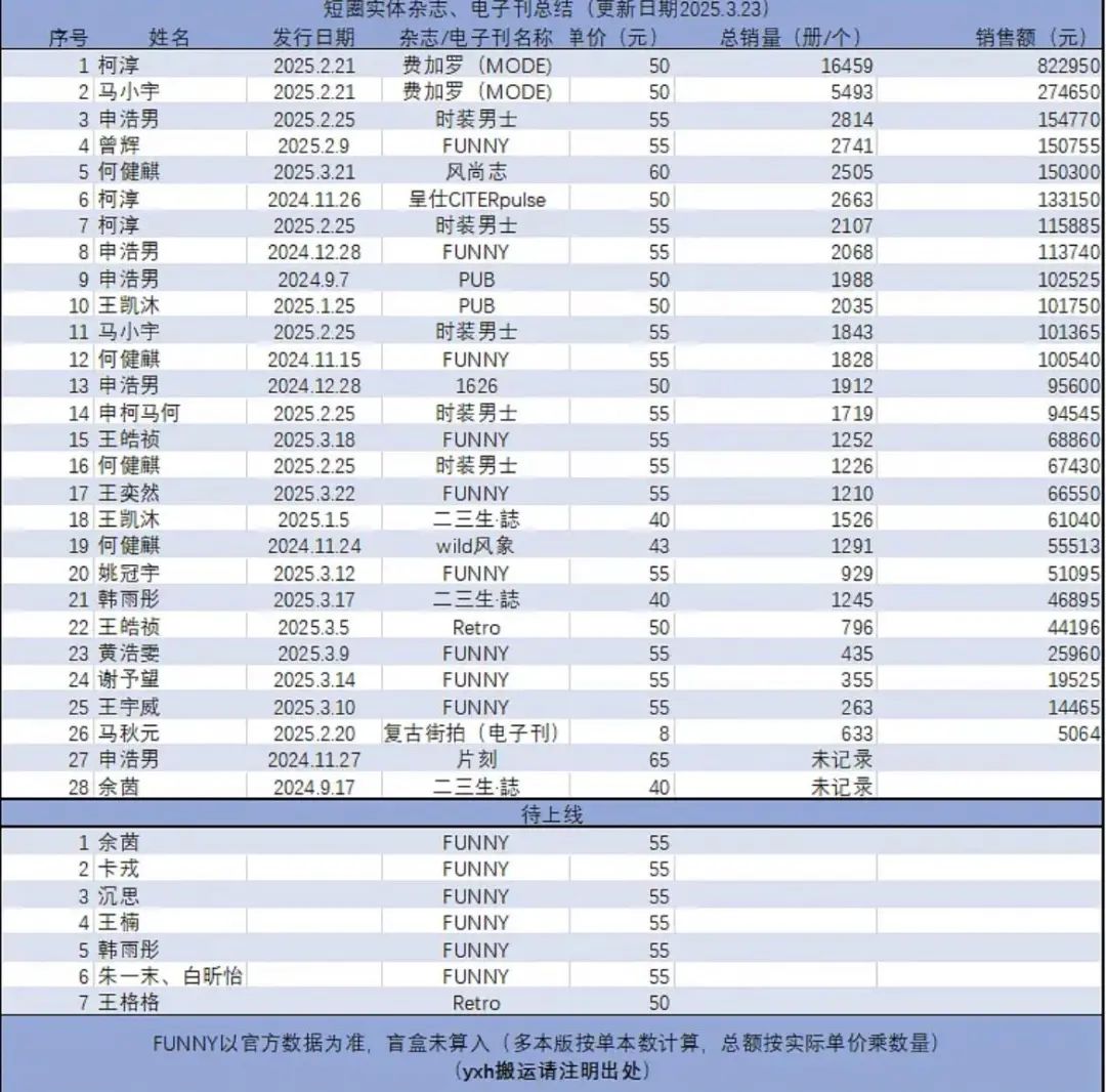 另一方面,粉丝经济正在为短剧演员创造短剧之外新的价值。品牌商务与杂志邀约方面,柯淳、马小宇的费加罗总销量突破20000本,销售额超110w。申浩男粉丝一人氪下50本杂志,点开杂志官宣评论区,晒单成了粉丝的控评内容。同时,粉丝会自发集资为短剧演员做生日应援、活动应援等。