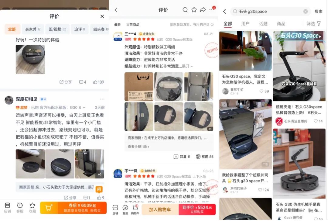 这款产品是石头G30 Space,官方不含补贴价6539元,翻翻电商平台已经有不少买家秀。