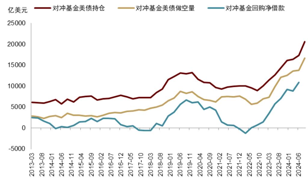 如果在美债供给冲击下利率大幅波动,恐触发已处于史高规模的基差套利交易的平仓。一旦当对冲基金平仓套利交易,恐引发跨资产抛售,进一步加剧市场波动。
