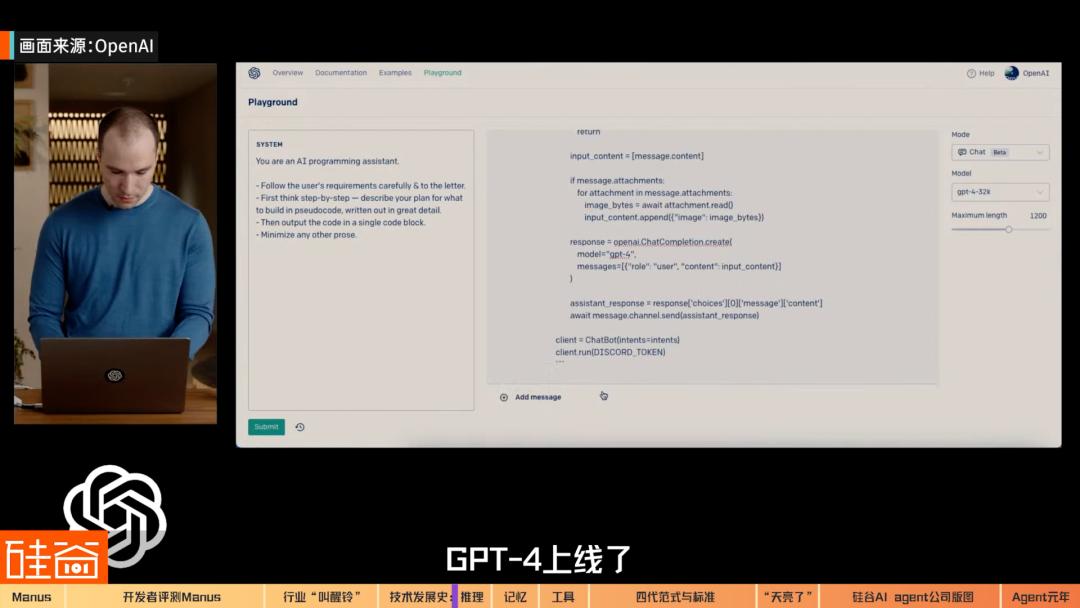 但到5月份的时候,OpenAI最大的竞争对手Anthropic,发布Claude模型。这个模型一开始得到开发者的关注,主要原因就在于,跟ChatGPT相比,Anthropic可接受的token大概提升了100多倍,意味着它可以获得更多的信息去思考和决策。所以Anthropic的发布也是技术史上非常关键的一笔。