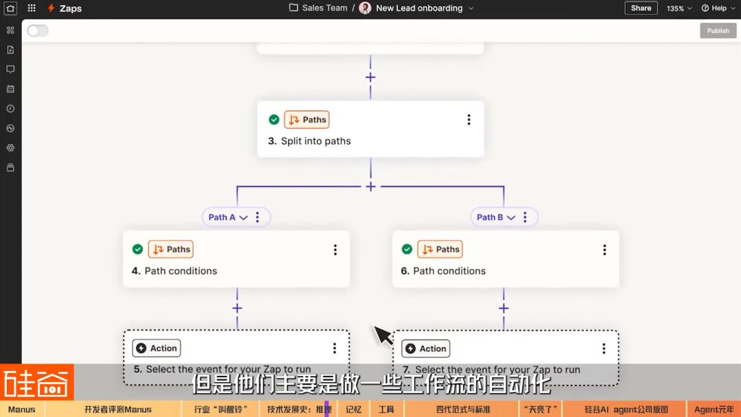 那时开发者社区沸腾了,因为整个模型有了推理能力,也可以接入各式各样的工具来完成一系列复杂的操作。当时有个公司比较有意思,叫做Zapier,这个公司是2011年成立的,但它们主要做一些自动化工具。但大语言模型发布后,他们就第一时间去帮大语言模型去做这系列工具,很多早期的开发者应该都用过Zapier,比如它可以让大语言模型接入谷歌邮箱,或许其他的应用,让大语言模型可以完成更复杂的工作。