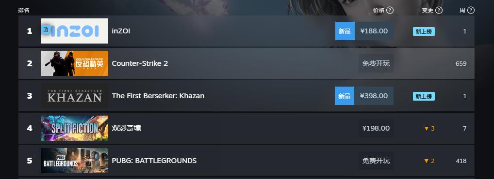 由蓝洞出品的《inZOI》在3月28日上线后便登顶Steam热销榜,目前依然排名前三。许多玩家在评论区中表示尽管还有需要亟待改进的部分,比如闪退、互动内容不够丰富等问题,但依然愿意支持这款新的生活模拟类游戏。而游戏的美术资源和AI功能则广受好评。