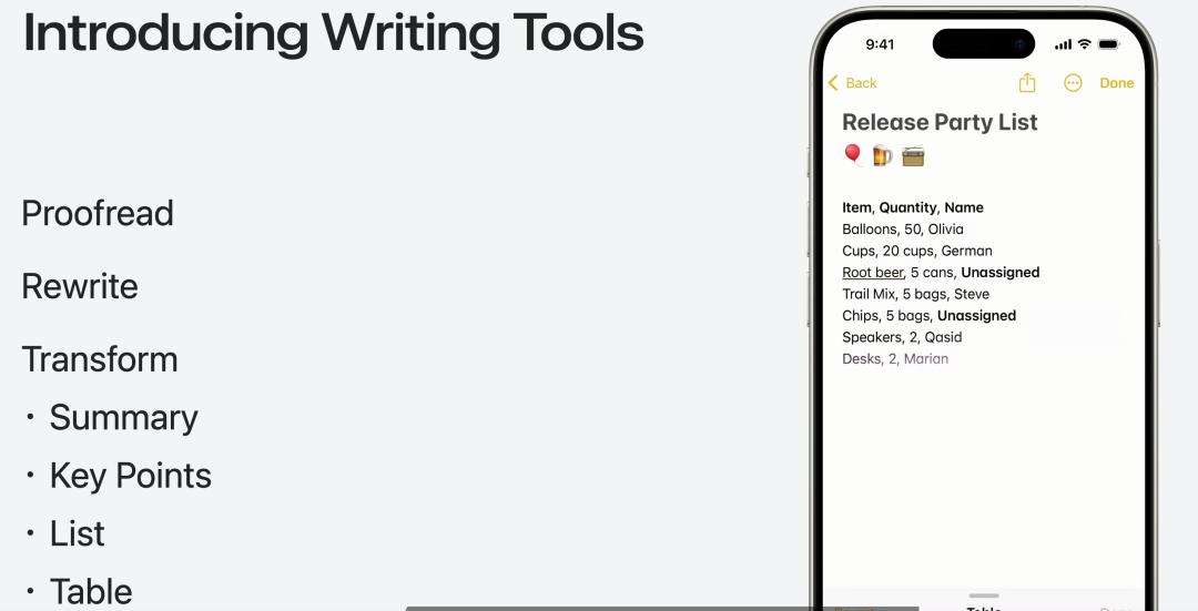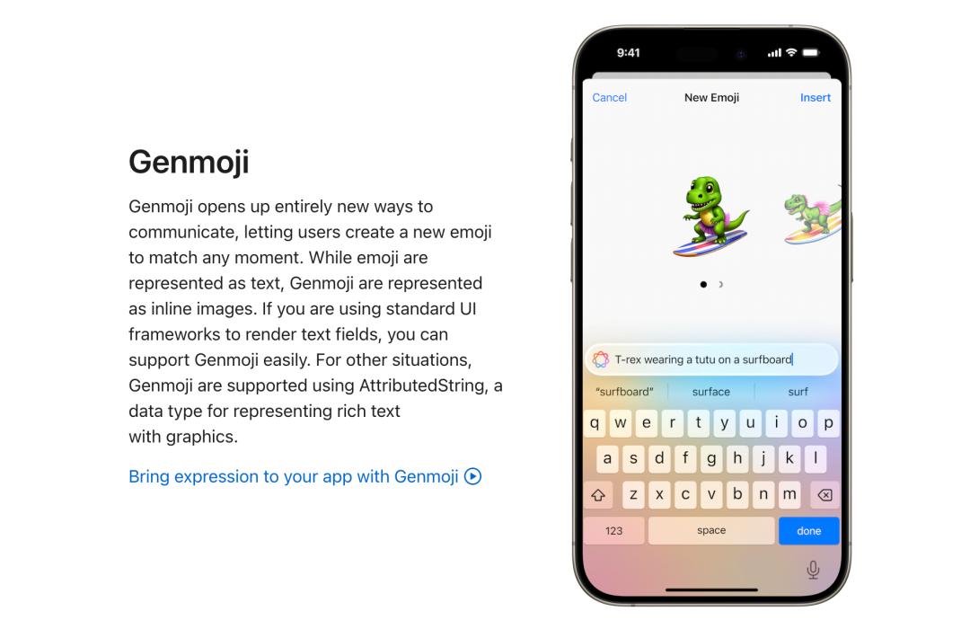 显然是利用了各自大模型的特点,来完成AI能力最大化。现在目前苹果开通了3个API分别是写作工具、背景图像、表情包以及联动Siri。