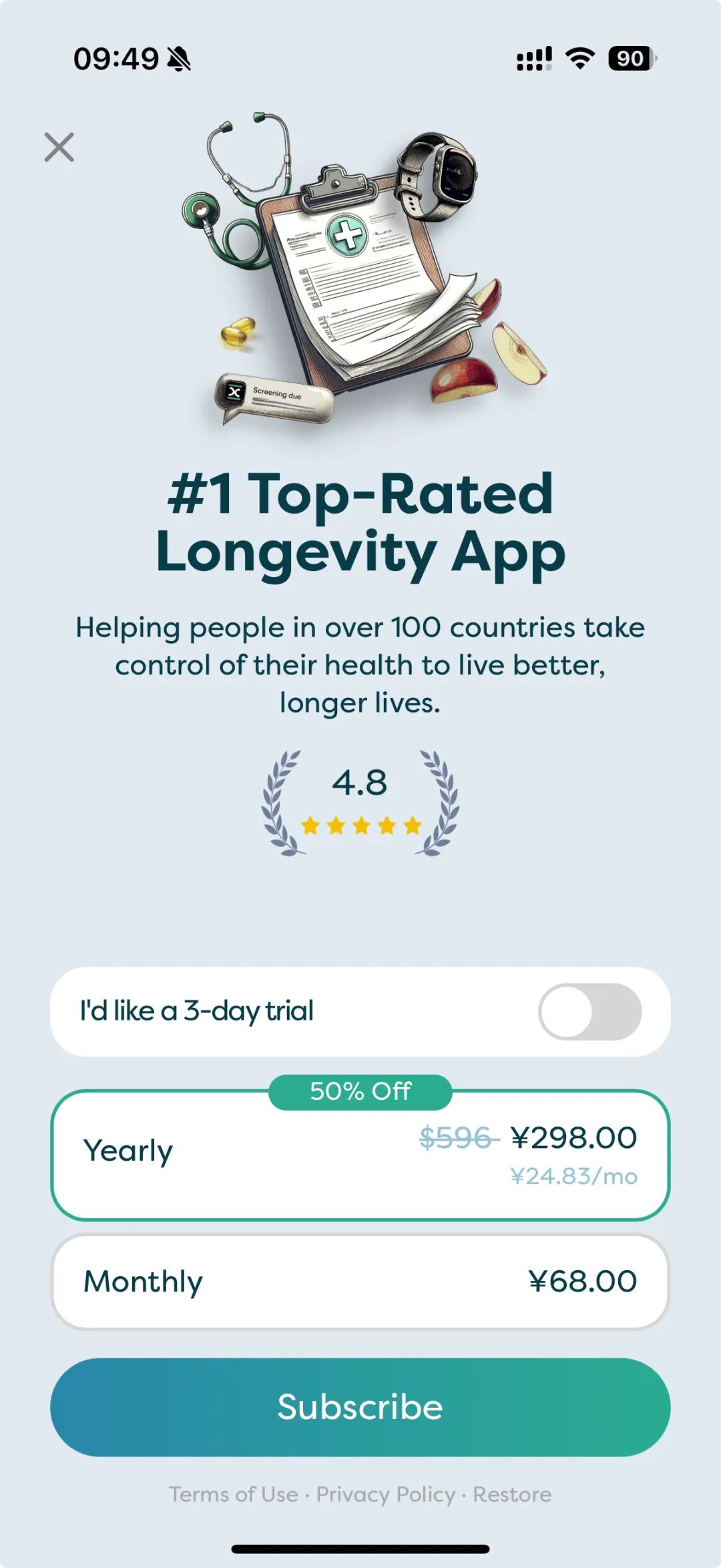 因为Apple有统一的支付路径与会员订阅,是一个非常好的付费尝鲜之地,比如爆火的死亡闹钟,用户填完问卷后需要支付才能进入详情,在iPhone上获得不错的收入。