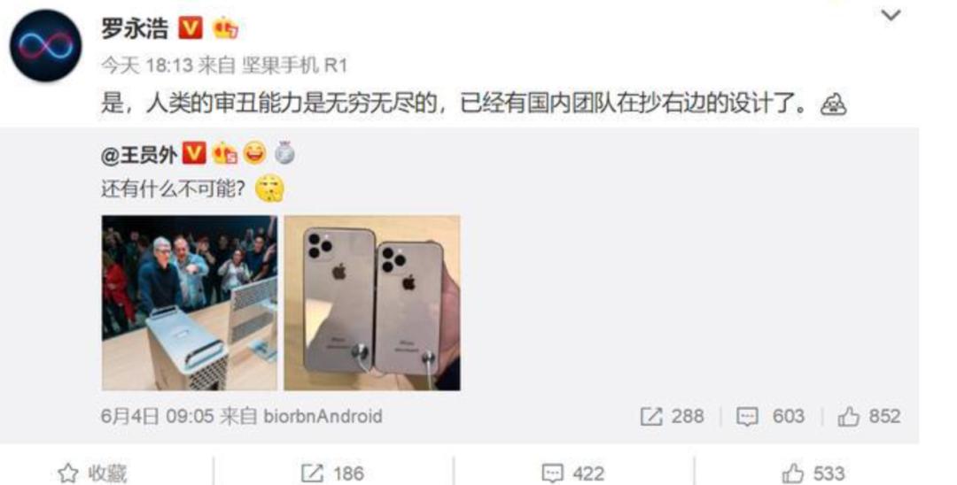 比如曾经老罗就说,国内很多企业看到苹果发新品了就马上说:“想什么,抄就行了”