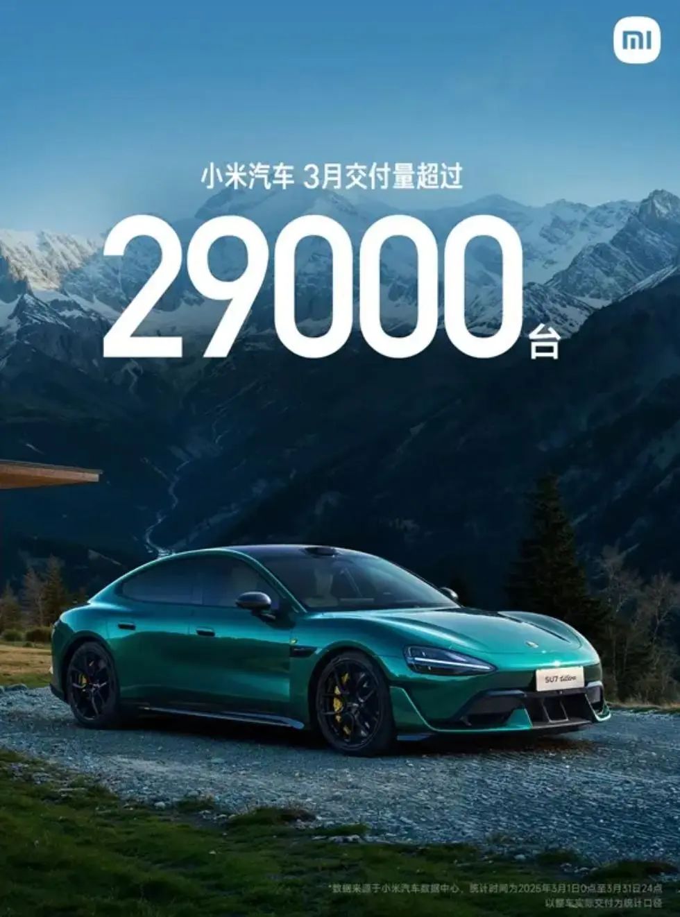 小米官宣3月交付超过29000台,目前产能提升进展顺利,有信心达成350000台全年交付目标。