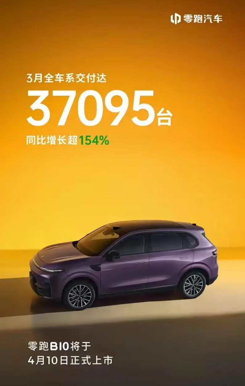 近日,零跑汽车公布了2025年3月交付量,其单月交付量达37095台,同比增长超154%。