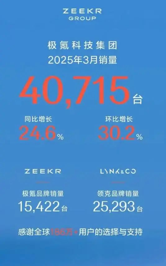 近日,“极氪科技集团”发布公告,极氪品牌销量为15422台。