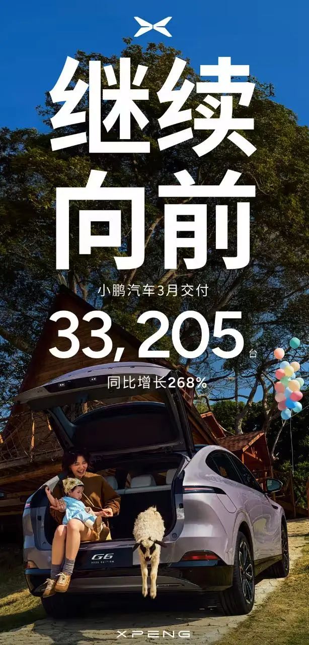 近日,小鹏汽车公布最新交付成绩。2025年3月,小鹏汽车共交付新车33205台,同比增长268%,连续5个月交付量突破30000台。2025年第一季度,小鹏汽车累计交付新车共94008台,同比增长331%,环比增长2.7%,再创历史新高。