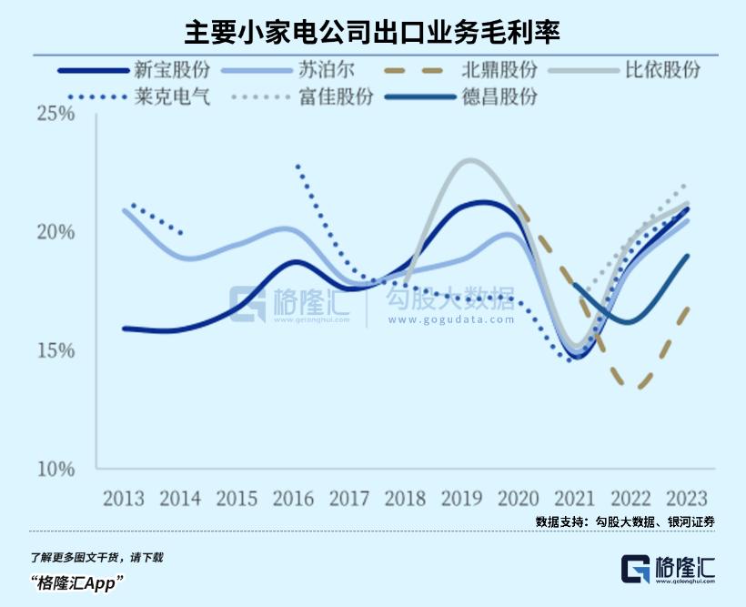 新宝股份是海外小家电代工龙头,占据小家电出口35%的份额,外销占比达70%,但和苏泊尔一样,处于较低的利润水平。