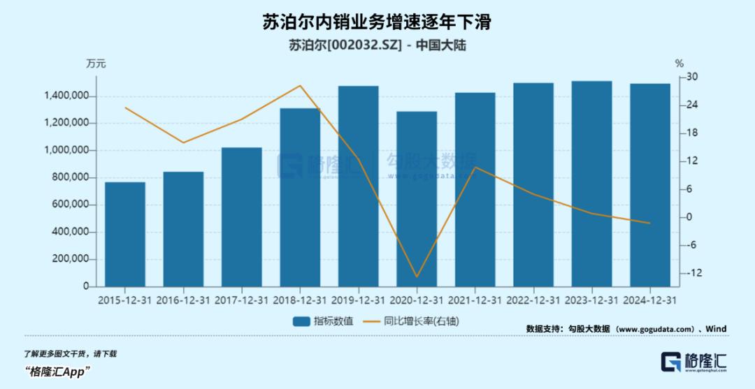 近几年来,苏泊尔内销业务增速逐年下滑,而今年,苏泊尔内销业务甚至同比下降1.21%。