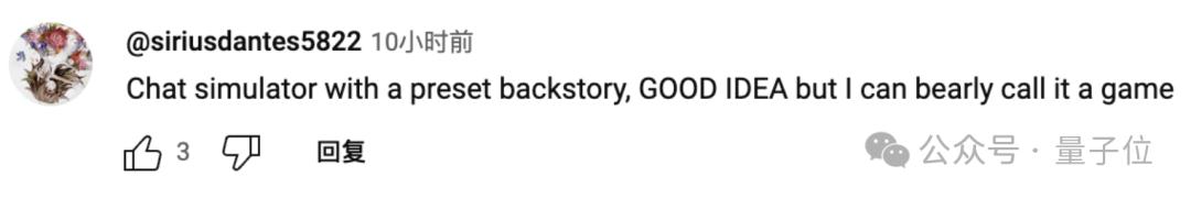 不过也有人认为,这是一个有故事设定的聊天模拟器,虽然想法很不错但是感觉不像是游戏。