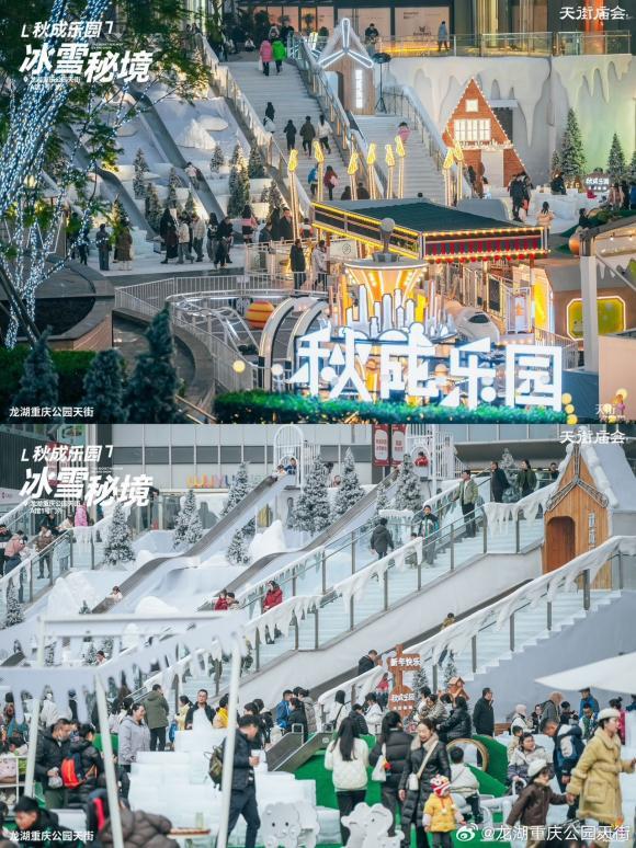 2024年7月,龙湖重庆公园天街于1号门外打造的近2000㎡秋成乐园焕新开园,这也是中央公园首个户外复合式家庭乐园。继2023年底引进旋转木马、云端飞椅、高铁乐园、蹦床等动力游玩设施后,此次新增了巨型风车滑梯、趣味探索虫洞、迷你自然山丘为主的无动力免费游玩设施,以及都市绿洲休息区,一举成了区域里人气最火的亲子场和社交场。一到周末和节假日乐园里人头攒动,带动1号门客流猛涨。