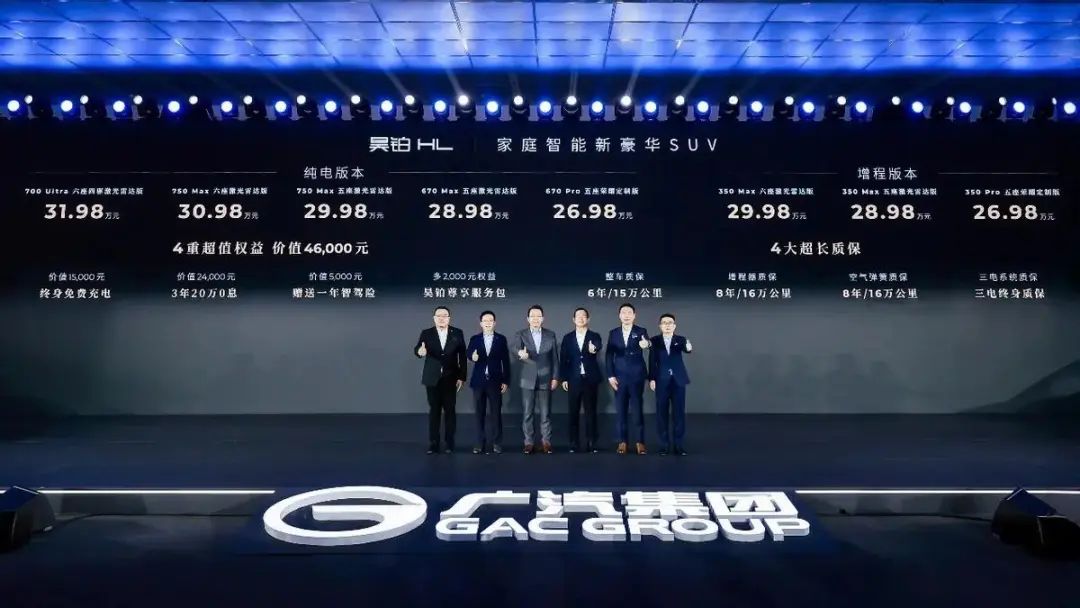 4月12日,昊铂HL正式上市,新车共推出8款车型,售价区间为26.98万-31.98万元。作为昊铂品牌旗下旗舰SUV,昊铂HL定位大型SUV,全系基于800V高压平台打造,提供增程和纯电动力,其中增程版CLTC纯电续航350km,纯电版CLTC续航最高750km,首搭广汽GSD高阶智驾系统,标配激光雷达,同时还标配智能调节减震器SDC与空气悬架。
