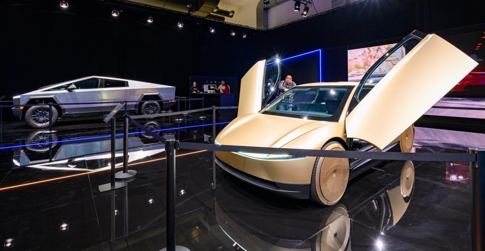 今年1月在布鲁塞尔举行的2025汽车沙龙上展出的特斯拉自动驾驶出租车