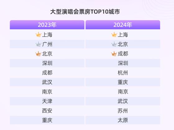 在多位业内人士看来,成都在全国演出市场中的表现格外引人注目。《竞逐升级多元发展——2024年大型营业性演出市场趋势及特点分析报告》显示,2024年,在大型演唱会的票房贡献上,成都跻身全国前三。
