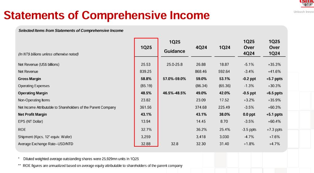 17日,台积电公布2025Q1业绩: