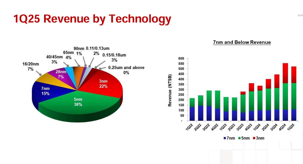 从产品结构来看,先进制程继续主导台积电的收入来源。最先进的3nm工艺占总晶圆收入的22%,5nm工艺占36%,7nm工艺占15%。整体而言,7nm及更先进的技术工艺贡献了台积电总晶圆收入的73%。