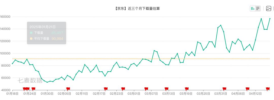 即使有前面的ASO问题,现在京东下载量都能够被京东外卖业务拉起来了,如下是ASO100下的京东APP下载量