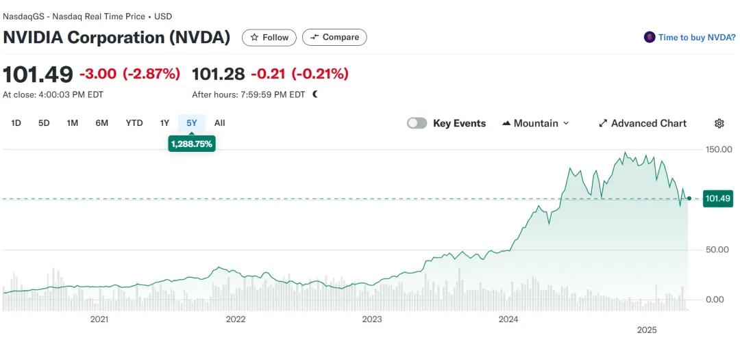 如果从1月份英伟达股价最高点150+美元看,目前英伟达市值已经跌去了1/3,上万亿美元,期间既有 DeepSeek/华为对英伟达算力叙事的影响,也受特朗普的关税政策波及。
