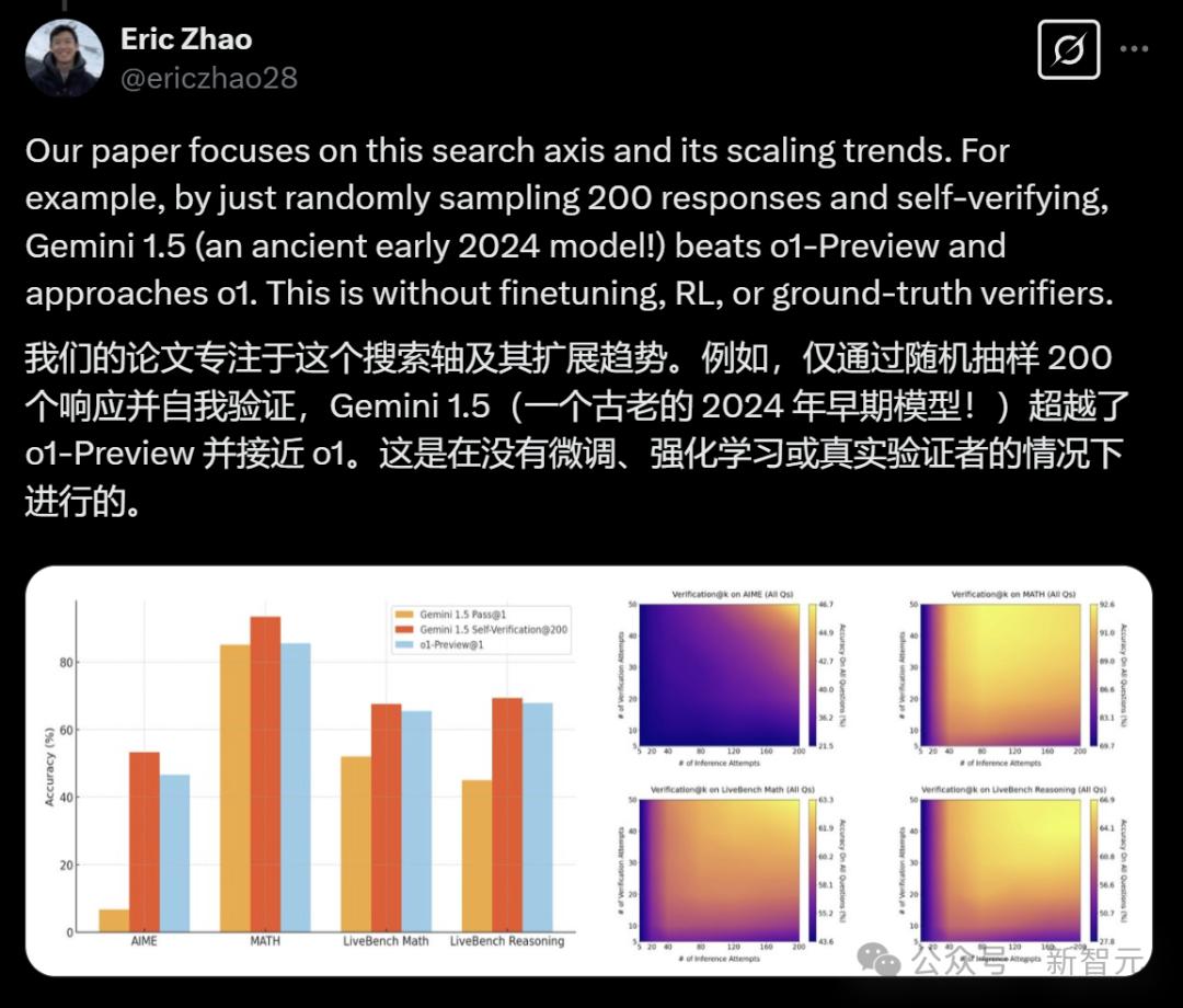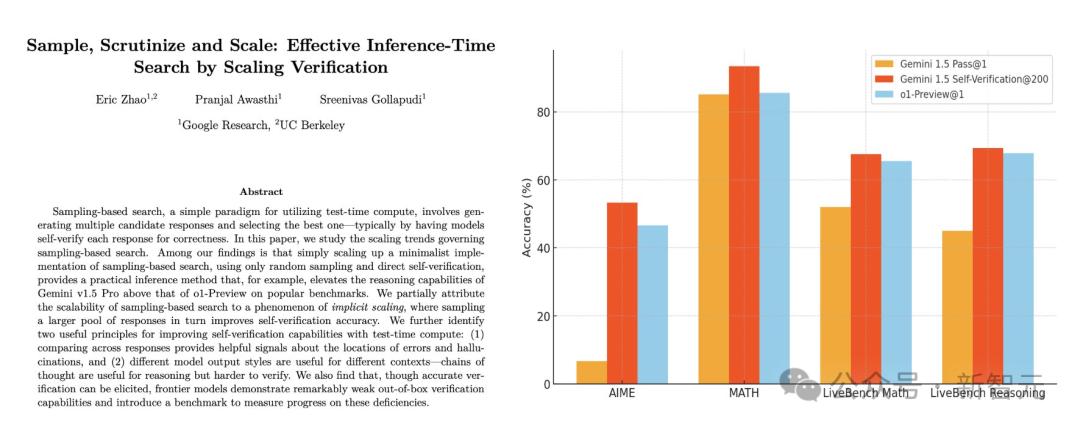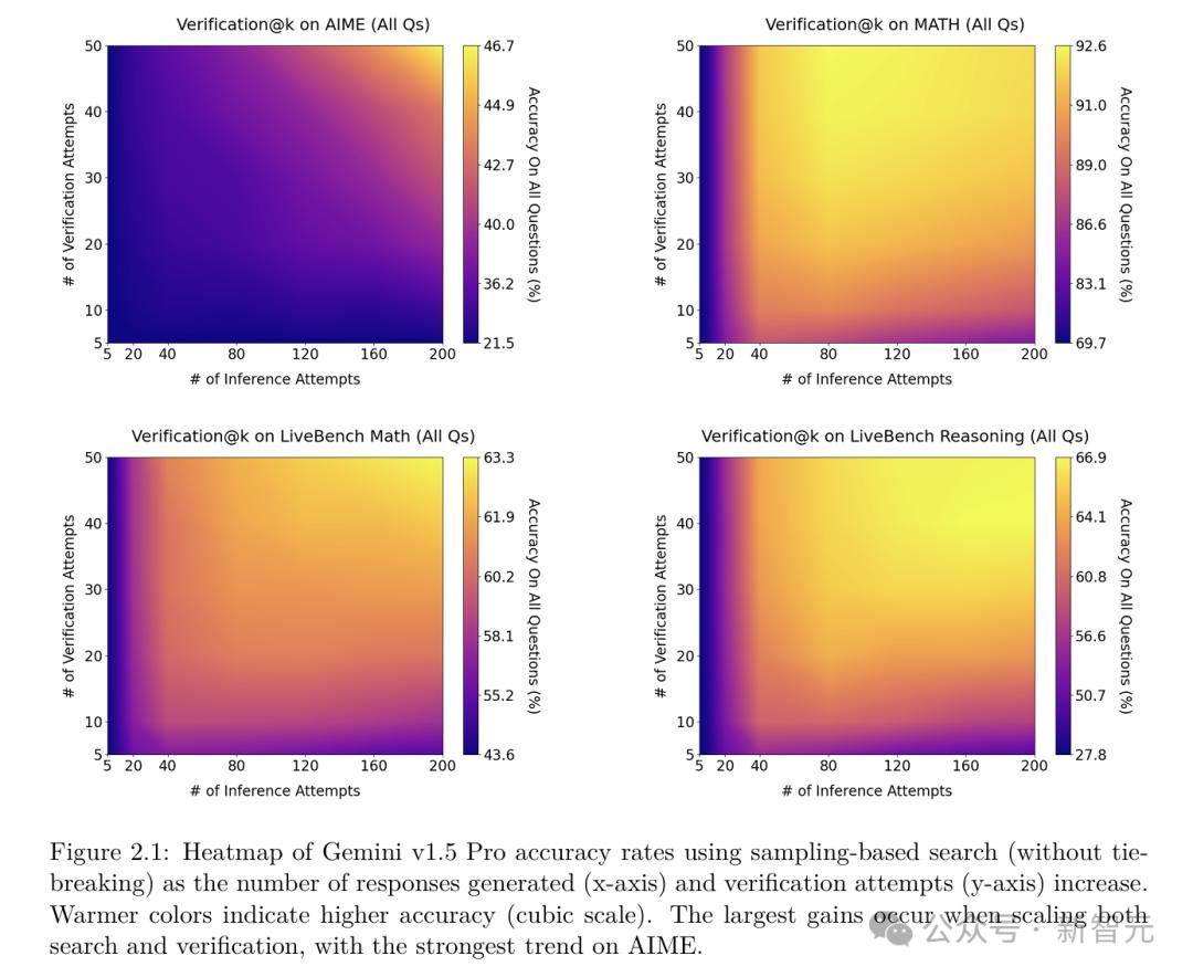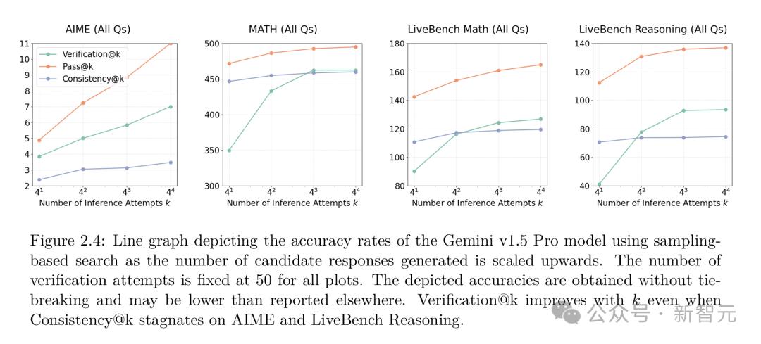 来自谷歌和伯克利的华人研究员发现,随着采样数量和验证强度的增加,模型的推理性能有显著的提升。