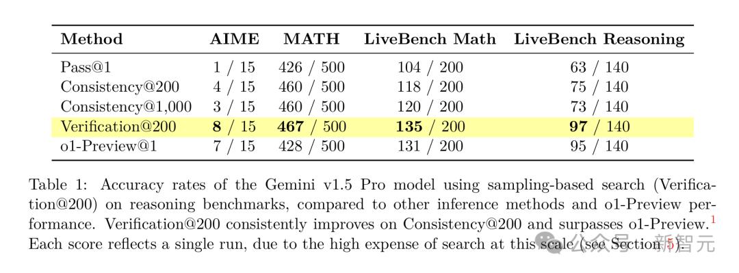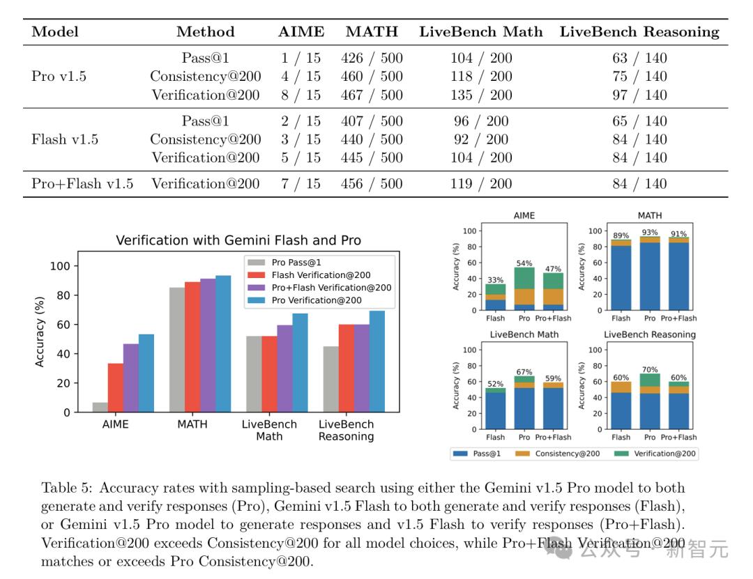 在基于采样的搜索(Verification@200)中,Gemini v1.5超越了o1-Preview。