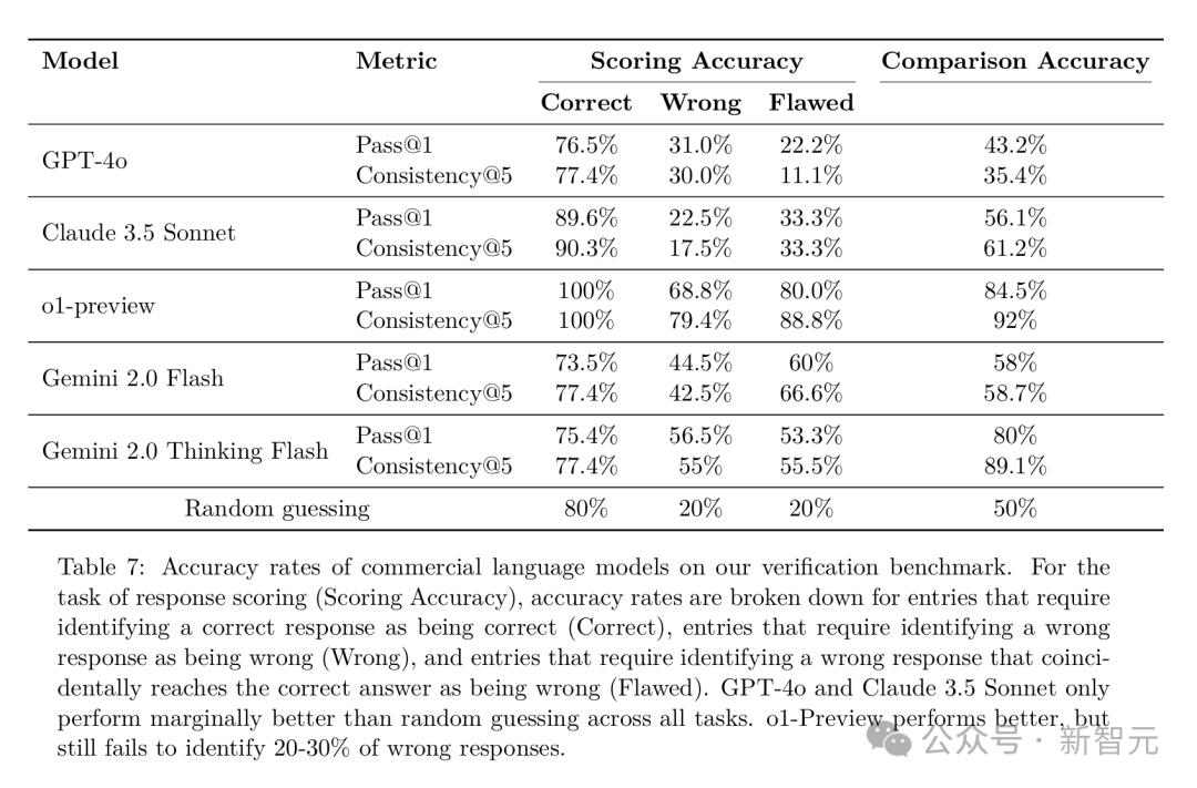 有些模型在验证方面的表现甚至比随机猜测好不了多少,这说明它们在识别错误答案和判断答案正确性方面还有很大的提升空间。