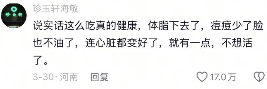 还有人感到了绝望:这样吃下去身体是健康了,但人不想活了;