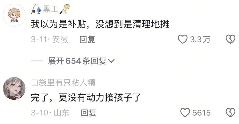 本以为国家会搞一些减肥激励政策,没想到第一步先对地摊下了手,这下更没动力接孩子了。