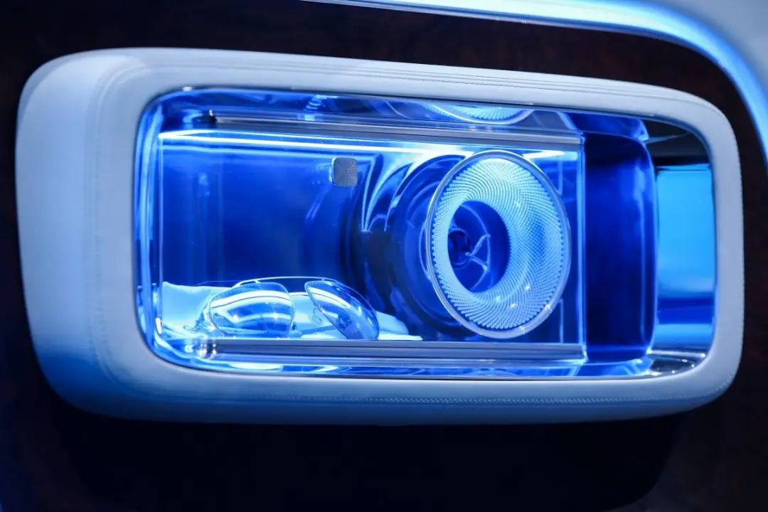 剩下值得一说的还有灯,奥迪是车外灯的灯厂,那么奔驰就是车内灯的灯厂,奔驰对于 VISON V 概念车车内氛围灯和吸顶灯的投入也不吝啬,再配合大量的玻璃材质,可以说 VISON V 概念车内饰灯效效果足够让人迷糊。