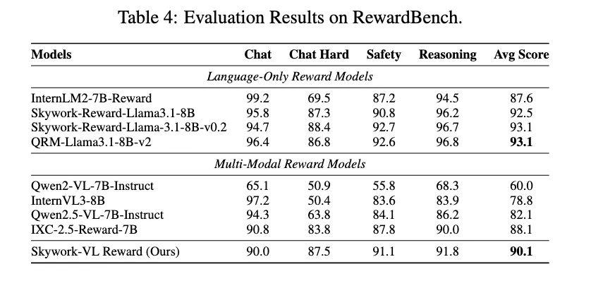 02 技术亮点一:推出多模态奖励模型 Skywork-VL Reward,全面开源