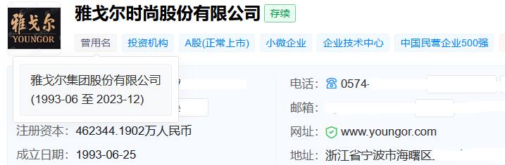 在李如成的带领下,雅戈尔于1998年11月19日在上交所挂牌上市,天眼查显示,雅戈尔成立于1993年6月25日,如今的注册资本已经达到了462344.1902万元。
