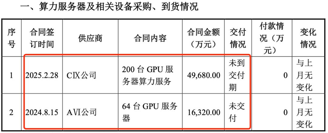 此外,根据莲花控股于2025年3月28日发布的公告,公司与CIX公司于2月28日签订的200台GPU服务器算力服务,合同金额高达4.97亿元。而在2024年8月15日与AVI公司签署的200台GPU服务器却仍未交付。