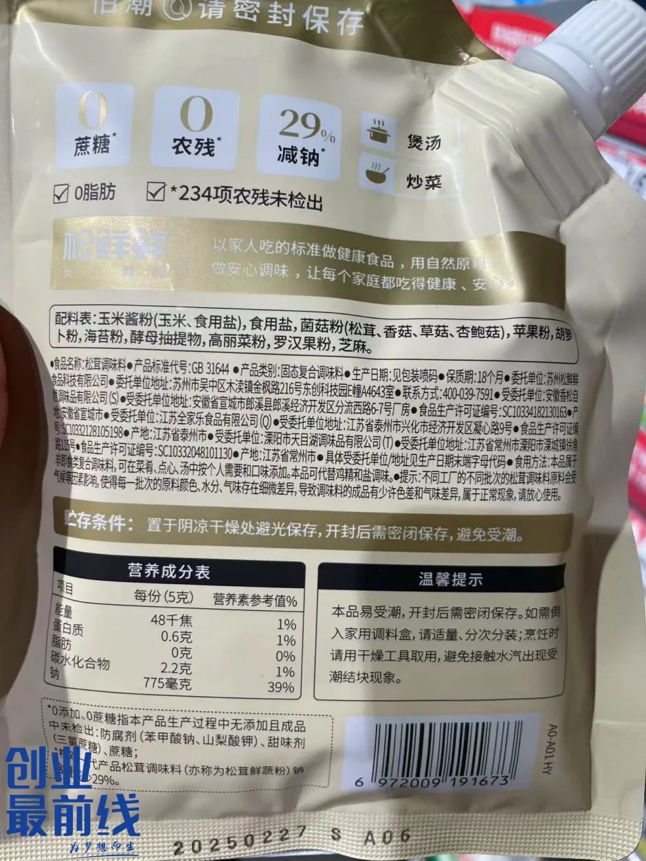 厨艺爱好者吴磊(化名)向「界面新闻・创业最前线」分享:“第一次尝试松茸鲜就被惊艳到了,它的提鲜效果特别自然,而且配料表很干净,主要是各种菌菇,虽然价格比传统调味品稍高,但这种天然健康的成分更符合我的需求,现在家里会常备松茸鲜。”