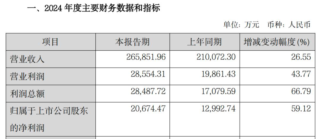 这一年,公司实现营业收入26.59亿元,同比增长26.55%;归母净利润2.07亿元,同比增长59.12%。