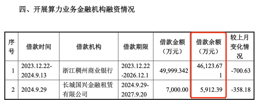 值得注意的是,为开展算力业务,莲花控股向金融机构共借款约5.7亿元,其中仍有5.2亿元没有偿还。