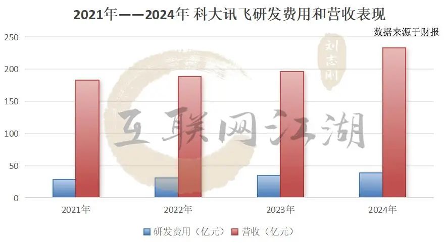财报显示:过去一年,科大讯飞实现营收233.4亿元,同比增长18.79%,对应的归母净利润为5.6亿元,较2023年的6.57亿元下滑了14.78%,整体出现了增收不增利的情况。