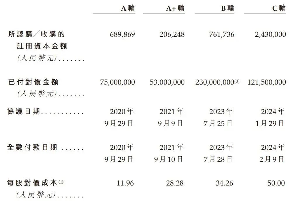2023年7月,沪上阿姨完成2.3亿元B轮融资,每股成本34.26元;2024年2月,沪上阿姨完成1.215亿元C轮融资,每股成本50元;