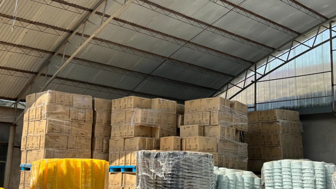 因为关税问题,原本按时出货的货物积压在了汤圆家工厂的一角