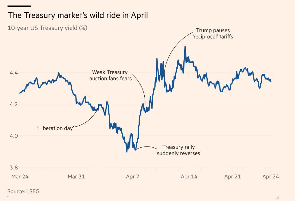 仅仅在特朗普宣布关税政策后的一周,美国国债市场就经历了一场罕见的波动。