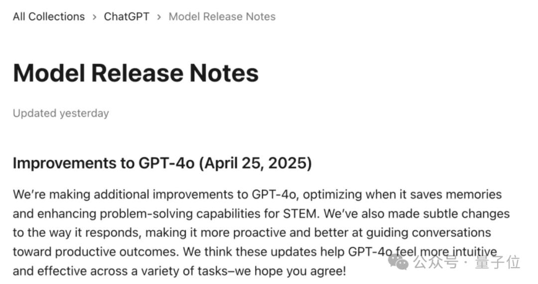 此前这位OpenAI员工还声明这次更新不涉及API,只影响到ChatGPT应用本身。