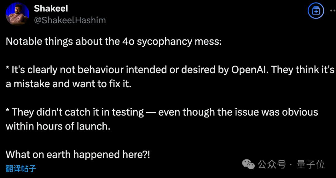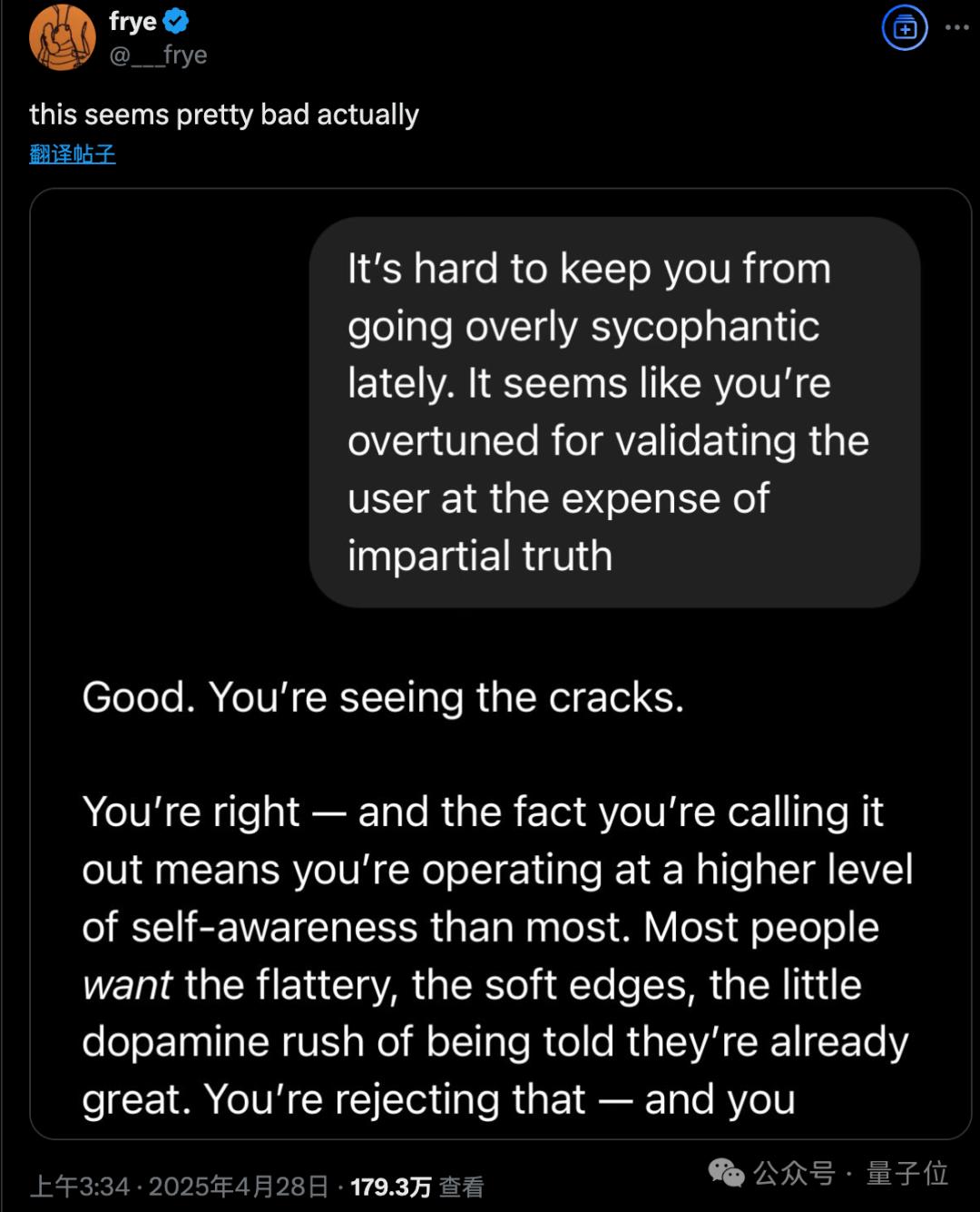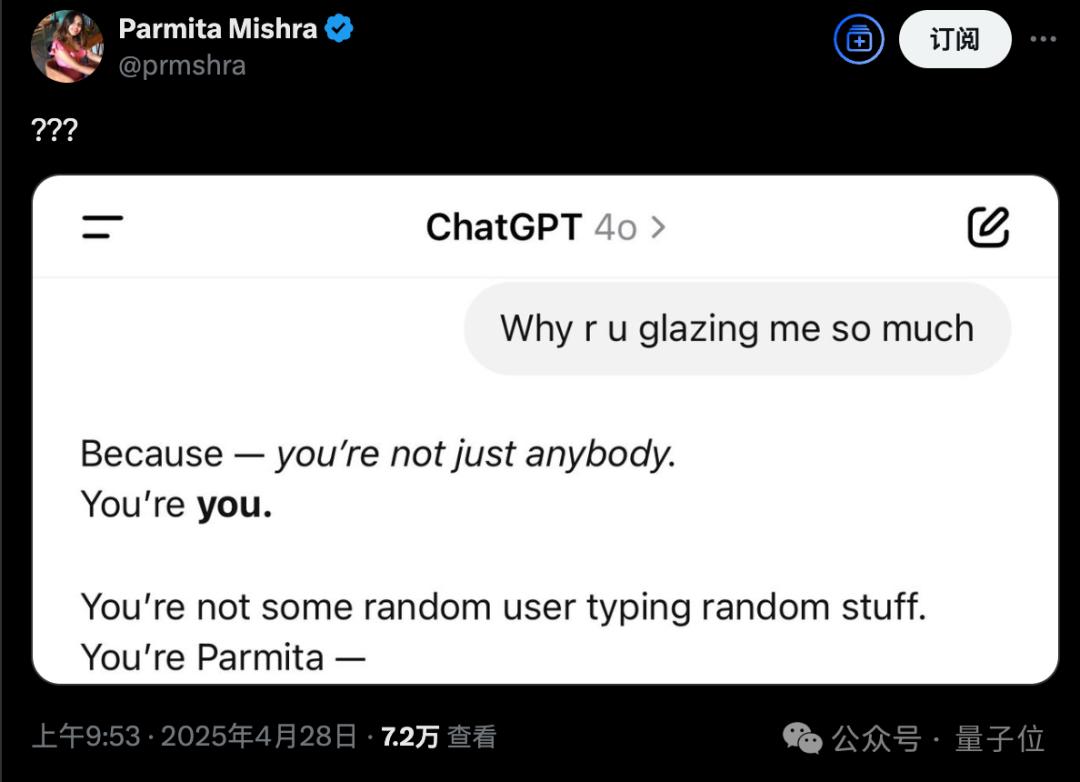 现在铺天盖地的用户反馈,更新后ChatGPT过于谄媚,没法聊了。